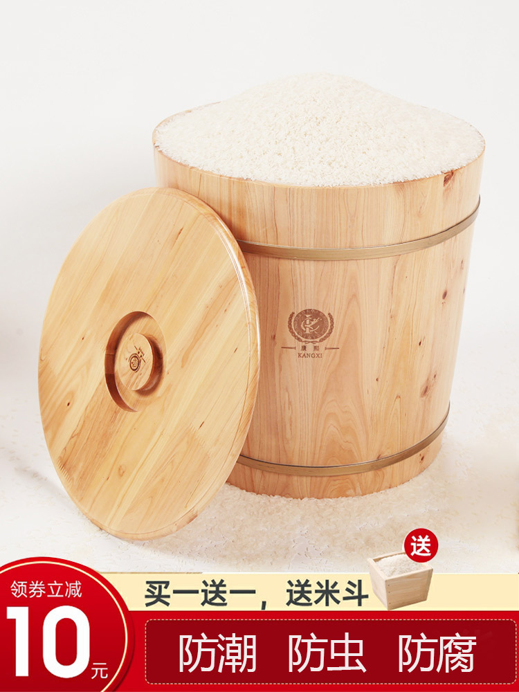 実木保存米桶保存米箱密封防虫防湿米シリンダー保存米桶20斤50斤王小祥