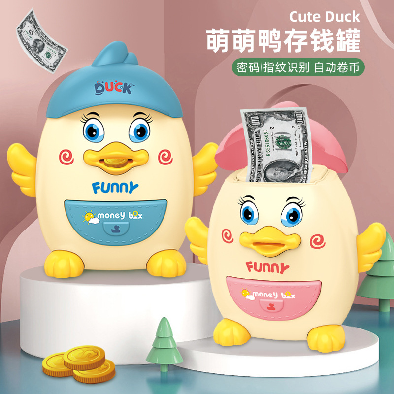 子供の漫画のアヒルの指紋の貯金箱は自動的にお金を巻きます。