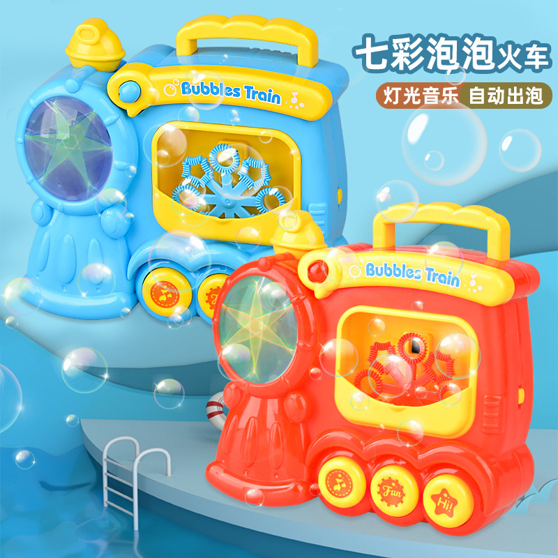クロスボーダーの子供の8穴の列車の泡の機械の電動の照明の音楽ネットの赤いボタンは自動的に泡のおもちゃの卸売りを吹きます。