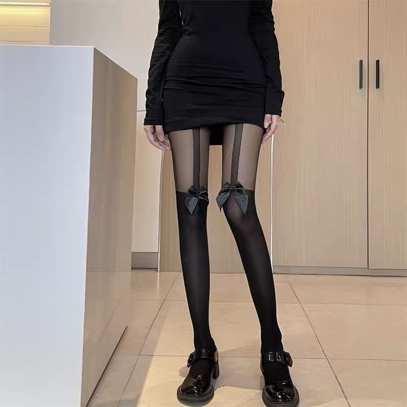 新作ラインストーン付き蝶結びパンスト、非対称のふくらはぎ蝶結び、ラインストーン付きJK女子パンスト