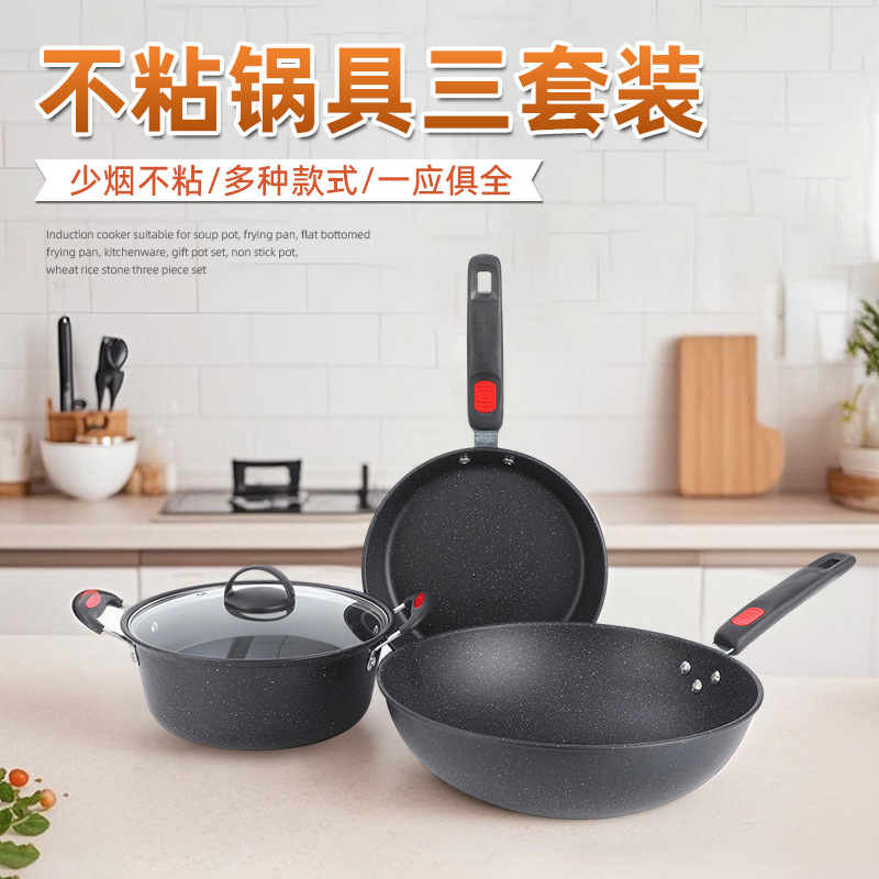 新型中華鍋3点セット 3in1ノンスティック中華鍋・スープ鍋セット ギフトボックス入り 平底フライパン