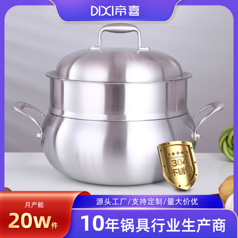 年会の贈り物304ステンレスのリンゴのスープの鍋の双耳のスープの鍋の味の杯の3層の蒸し鍋はlogoを印刷することができます。