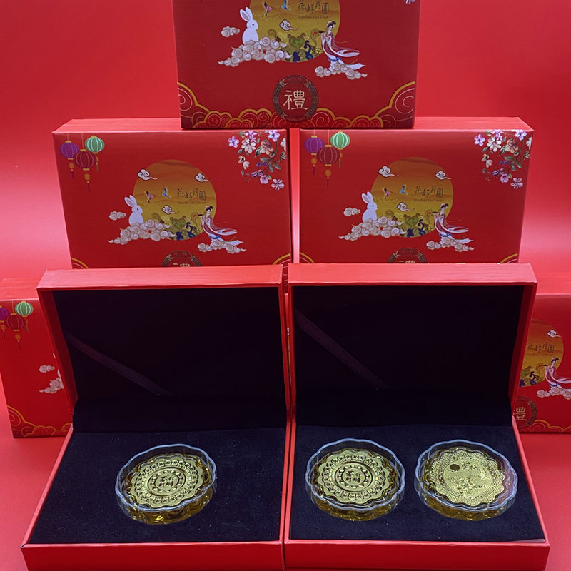 2025黄金花好月円瑠璃月餅セット999置物高颜値は目上の友人にプレゼントする