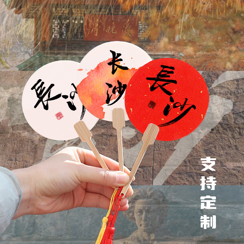 観光都市長沙観光地区の写真撮影記念カードのランドマークの扇子ネットの赤い記念品の国潮風の扇子の団扇
