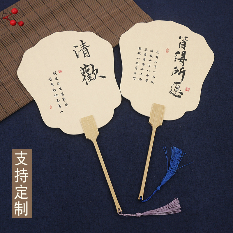 中秋団扇宣紙塗り扇手描き模写扇面diy線稿白描扇暖場活動落書き扇子