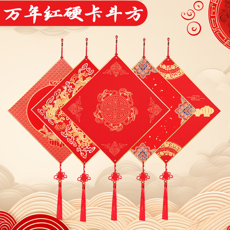 万年紅福卡斗方ストラップの空白を厚くした手書き硬紙両面宣紙中国結流蘇は表装しない