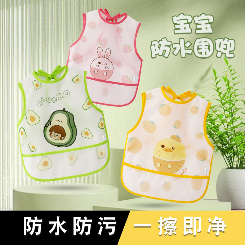 赤ちゃんPU防水カバー子供食事よだれかけベビー補助食品逆着保護服幼稚園絵エプロンご飯ポケット