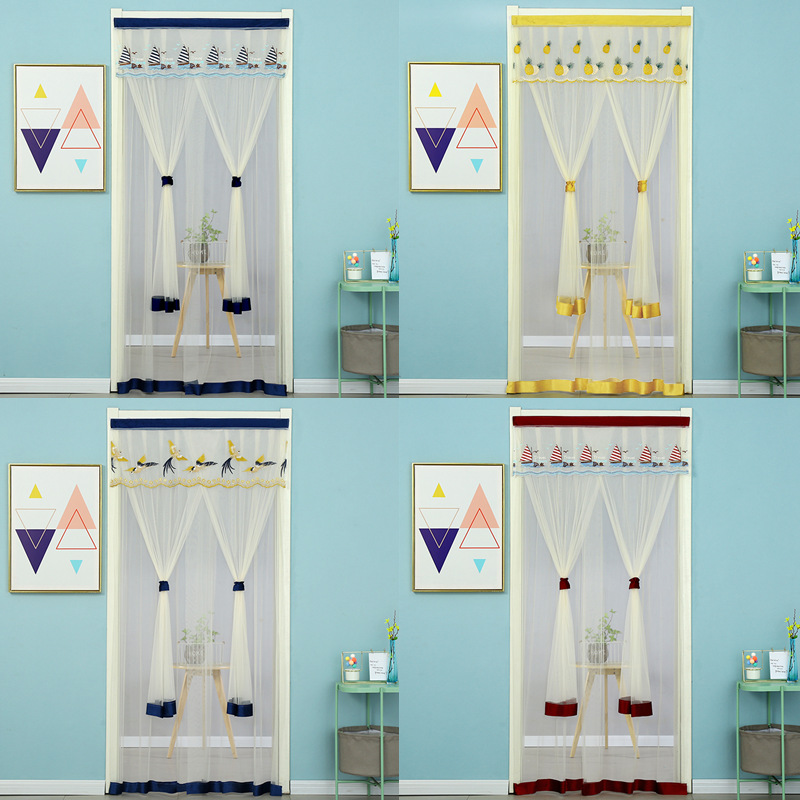 新型防蚊カーテンカーテンカーテンレース刺繍二重静音寝室カーテン半カーテン穴なし防ハエ夏