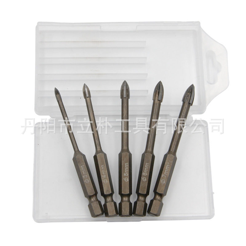 五本セット六角柄十字ガラスドリル3-7mm焼き黄覇王ドリル陶磁器ドリルケースセット