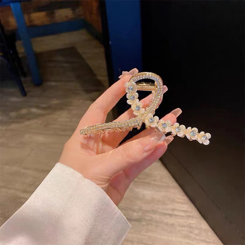 韓国の新しいドリルの花の金属のヘアピンの大きいサイズはサメの魚を挟んで夏の後頭部を挟んで真珠の髪飾りを挟みます。