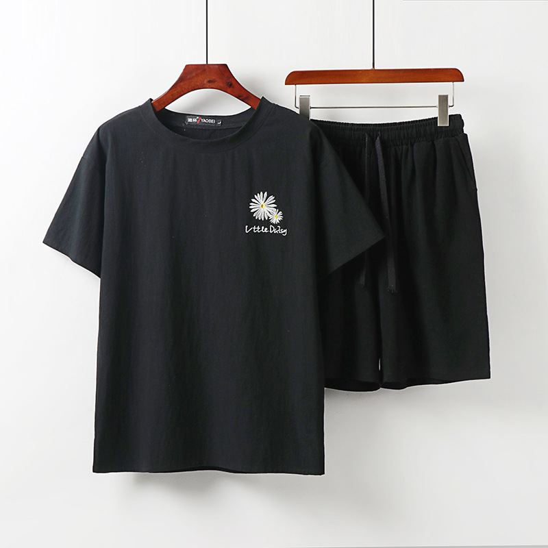 スポーツスーツの男性の夏の韓国版は半袖の半ズボンの綿麻の屋外のレジャー服の大きいサイズのスーツの男性の夏を修理します。
