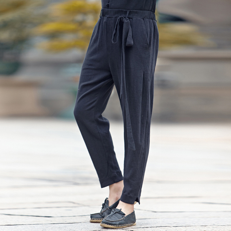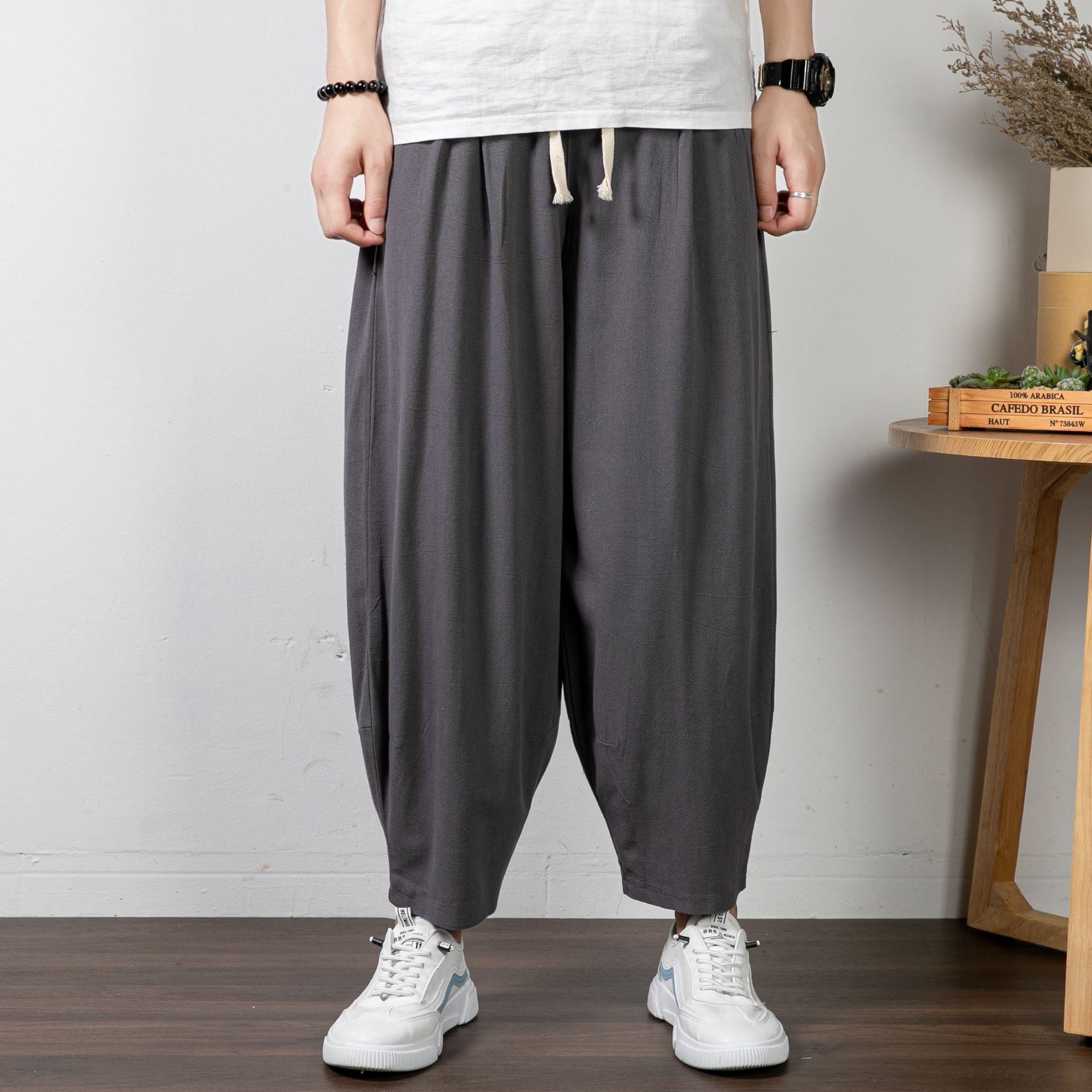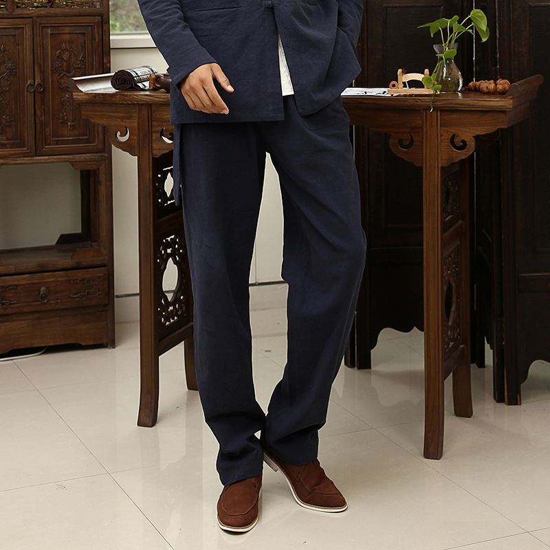 中国風亜麻のズボンの男性のズボンはゆったりしています。