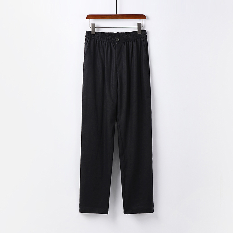 亜麻のズボンの男性の夏の薄い色の純色の全麻のカジュアルなズボンの日本の復古のズボンのストレートの綿の麻のズボン