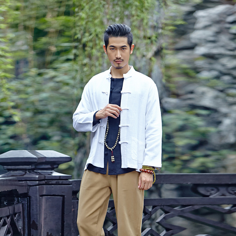 中国風のメンズ綿麻の古い粗布のシャツの男性の長袖の亜麻の唐は底のシャツを詰めます。
