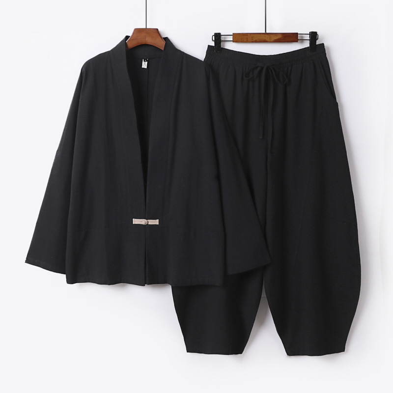 仏系中国風大コード綿麻セット男女同服唐装打座禅修行服二点セット居士服男