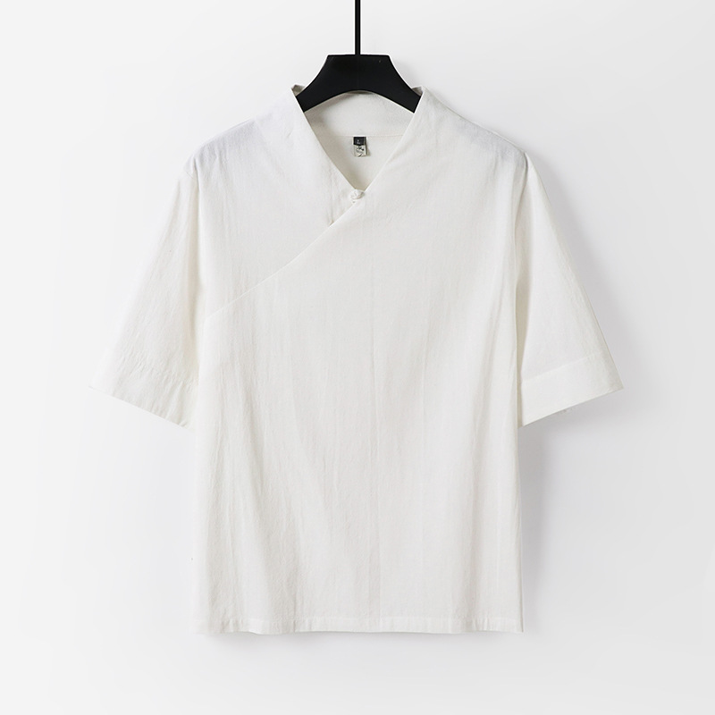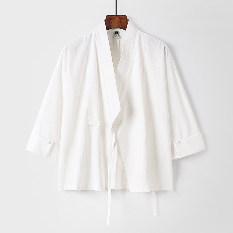 七分袖漢服男綿麻交襟インナーシャツリネンレトロ中国風インナー半袖裏地古着茶服男