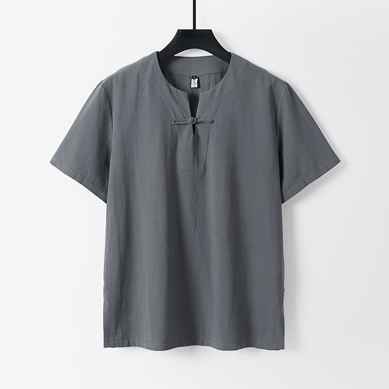 綿麻七分袖男tシャツ中国風復古中国風夏半袖盤ボタン亜麻カジュアル立襟上着男