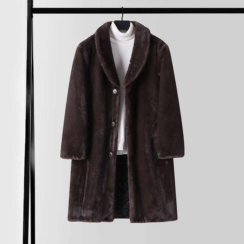 秋冬のミンクの毛の毛皮の大きいサイズのコートの男性の長いタイプの人造の毛皮のコートの厚い毛の風の服の綿入れのファッション