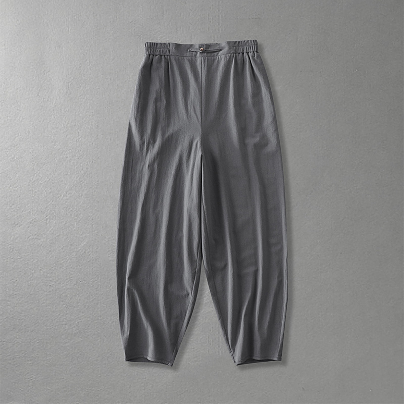 亜麻の広い足のズボンの男性のズボンの春と夏はゆったりしています。