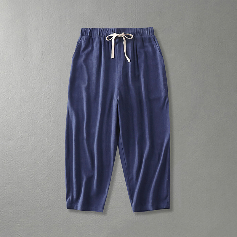 大きいサイズの亜麻の7分のズボンの男性はゆったりしています。