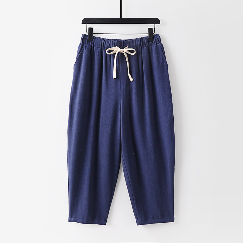 亜麻のズボンの男性のカジュアルな9分のズボンのゆったりした束の足のスポーツのズボンの大きいサイズの7分の綿の麻のハーレムのズボンの男性
