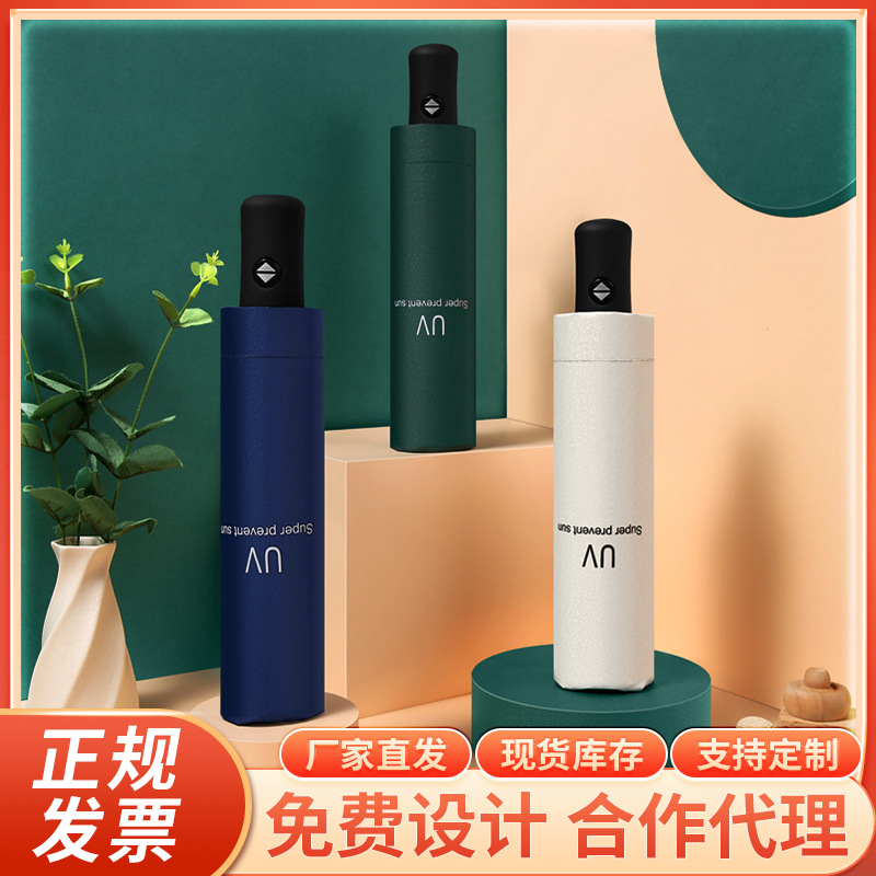8骨全自動三つ折り傘晴れ傘無地印ロゴ折り畳み広告傘大量卸売り男女共通