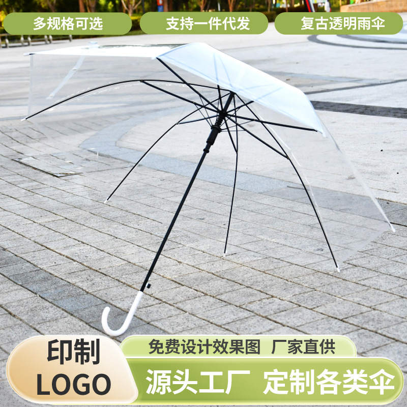 ロゴ広告ギフト傘生放送荷物付き写真撮影長柄透明傘ストレート自動透明傘卸売り