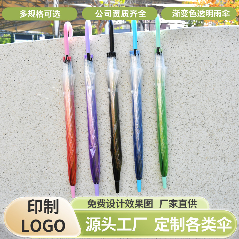 クラゲグラデーション色PE透明傘日よけ紫外線防止日傘長柄晴雨両用広告透明傘