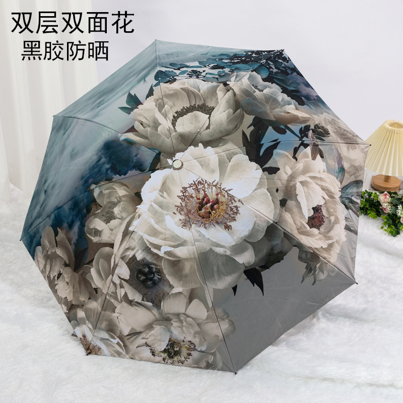 二重の夢の花園の晴雨の傘の黒いゴムは紫外線の日傘の女性の折り畳みの日傘の晴雨の両用を防ぎます。