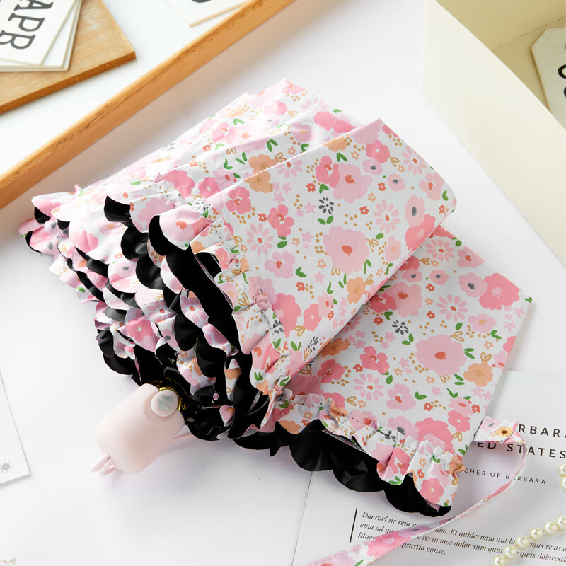 日系砕花レース黒ゴム五つ折り傘折り畳み晴雨両用日傘紫外線防止女性日傘
