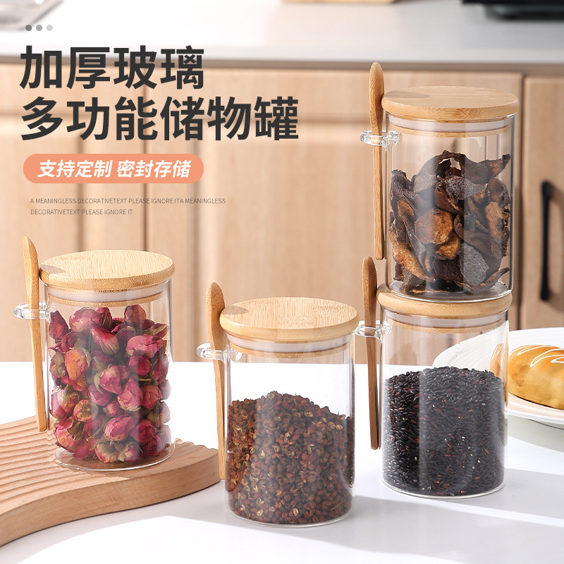✅台所用竹木蓋貯蔵タンクガラス分類タンク密封茶葉ガラスタンク高ホウ素シリコン透明貯蔵タンク