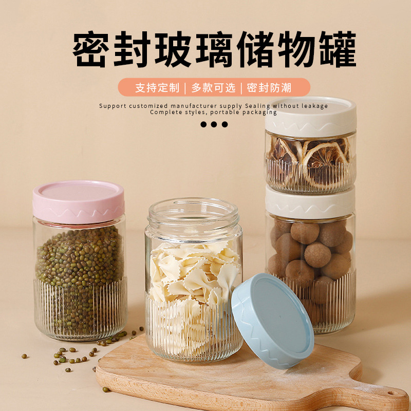 アマゾンクロスボーダー16オンスガラス密封缶オート麦カップヨーグルト瓶ナッツ食品防湿貯蔵缶メイソン瓶
