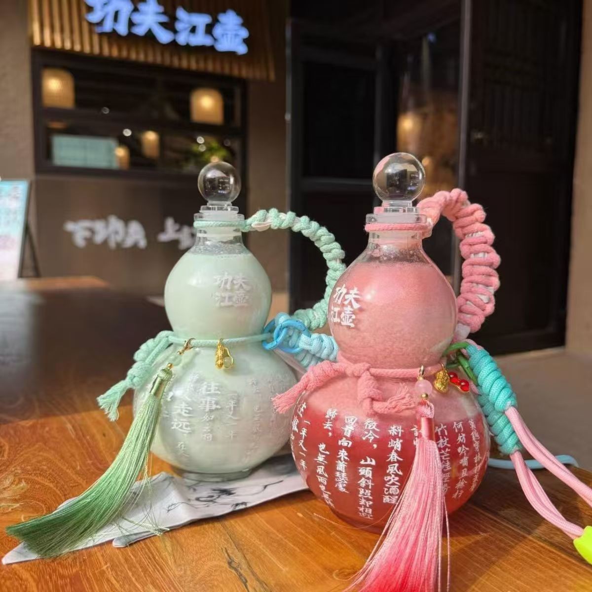クリエイティブ 500 ミリリットルガラスひょうたんボトルフルーツワイン包装漢方薬ミルクティーボトル水出しボトルリボンハンドル文化と観光記念品
