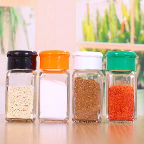 メーカー卸売り角型ガラス調味料瓶豚肝粉瓶海老皮粉瓶赤ちゃん補助食粉分注瓶穴栓付き