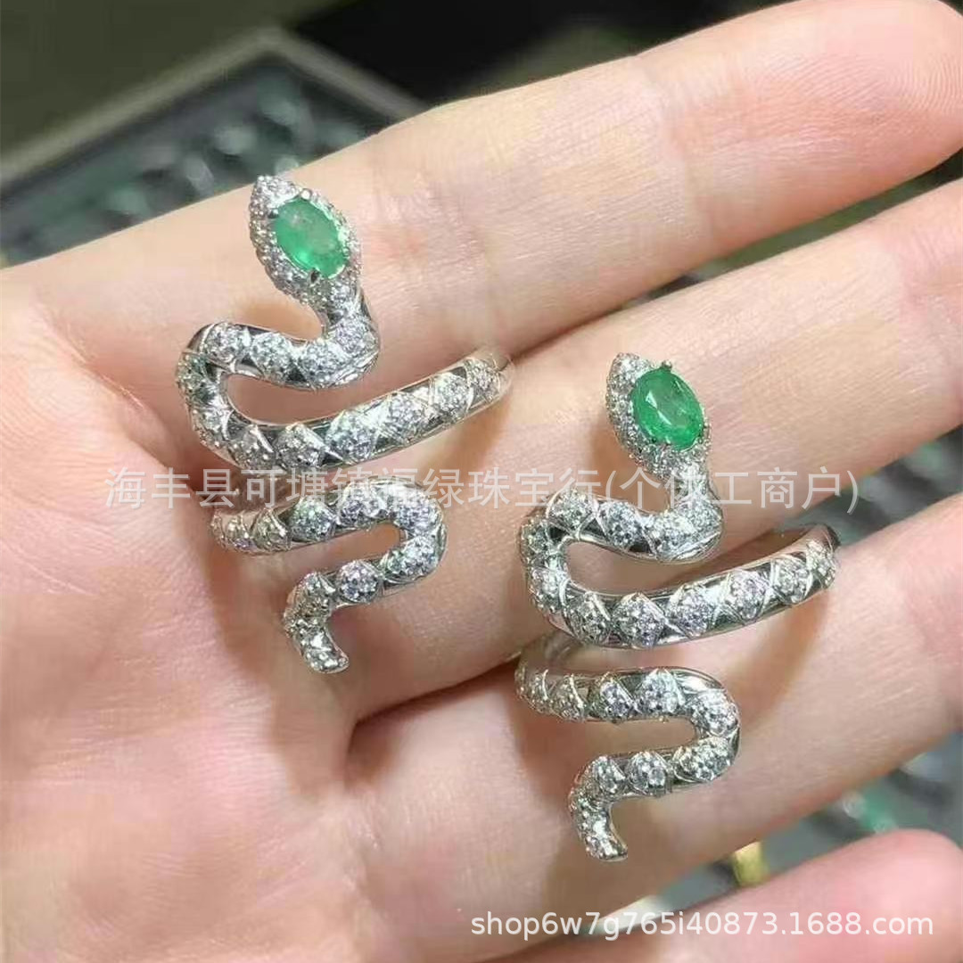 メーカー卸売天然エメラルドスネークリング s925 シルバー象嵌クリスタル透明なパーソナライズされた女性のリング