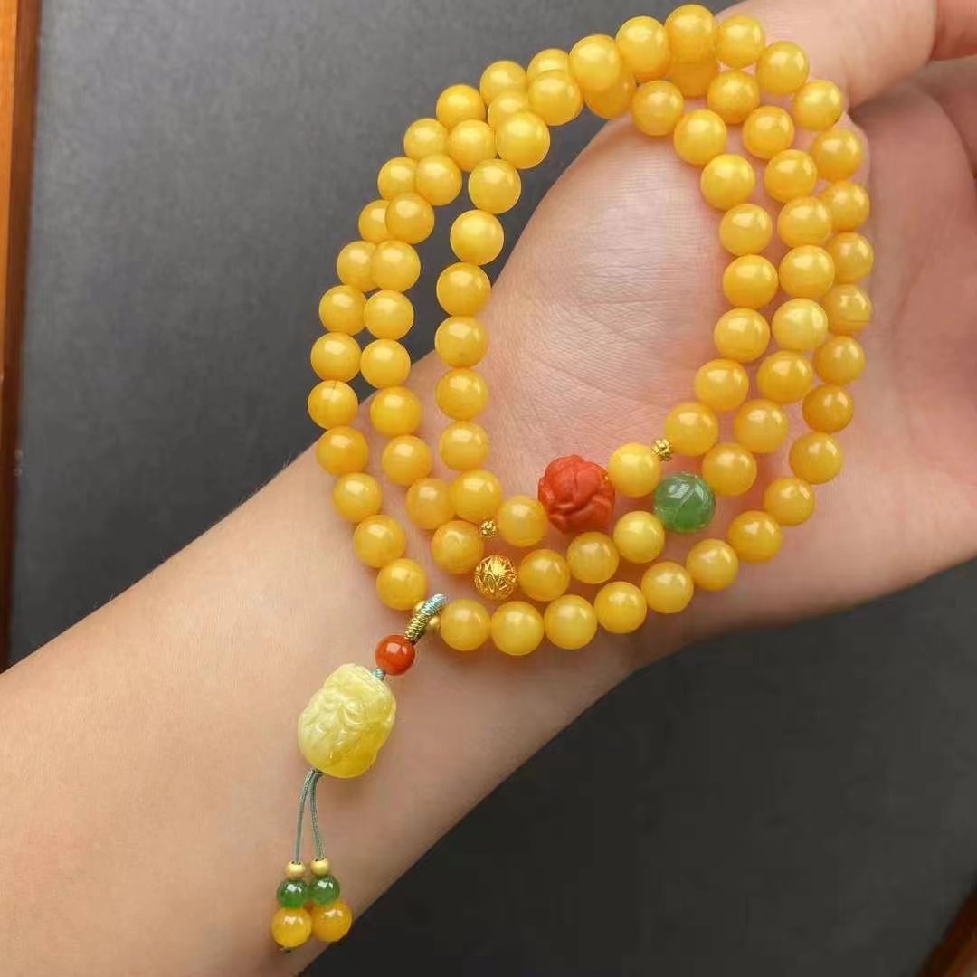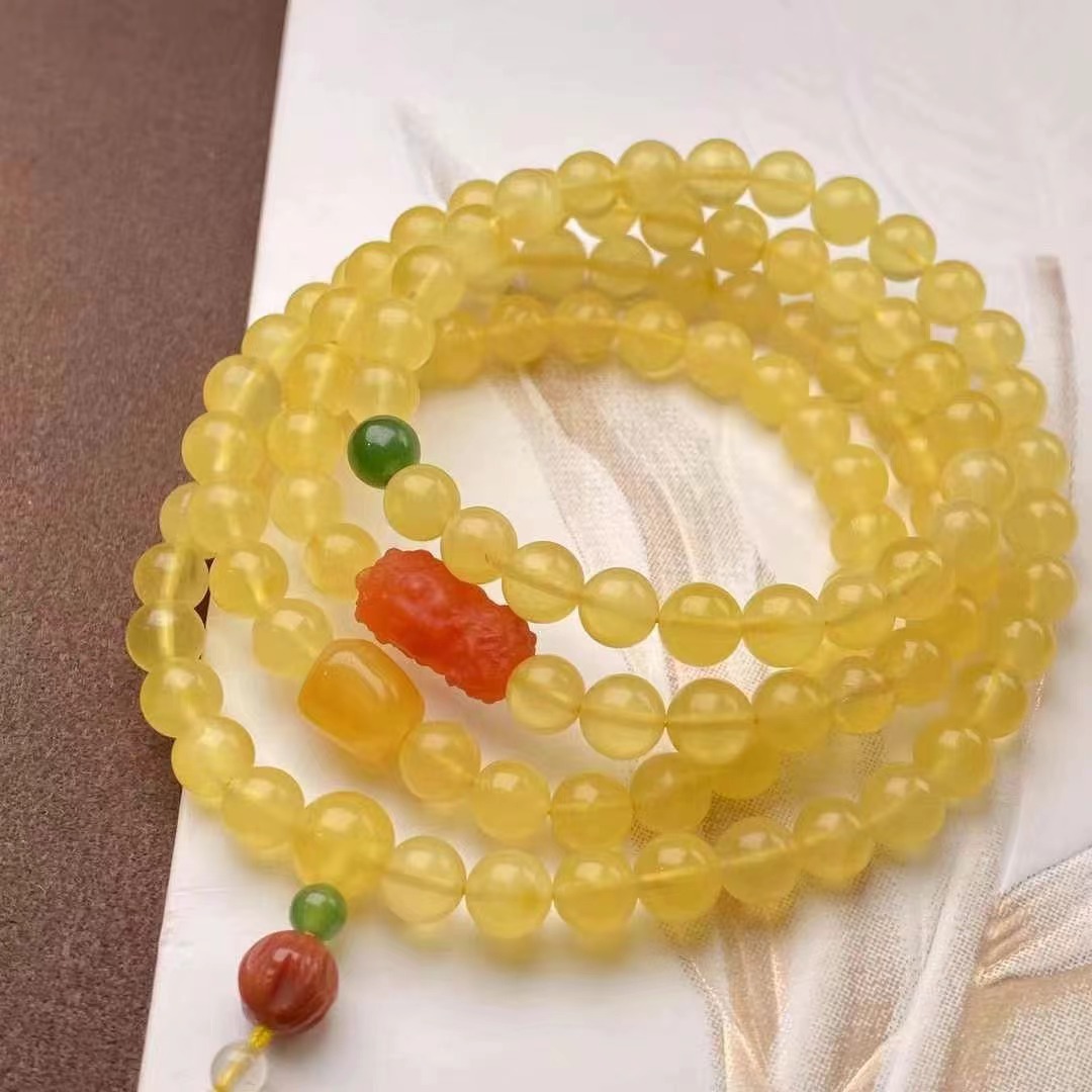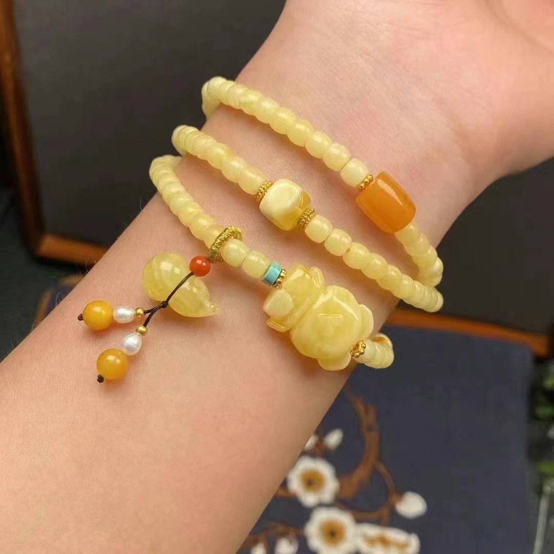 メーカー卸売り天然ミツロウ老蜜3輪ブレスレット仏珠DIY設計金直播間標品