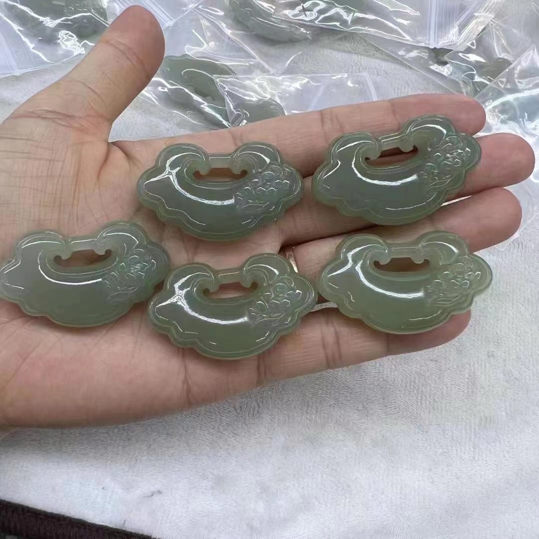 メーカー卸売り和田玉青海材料花開富貴如意鎖ペンダントDIYアクセサリー