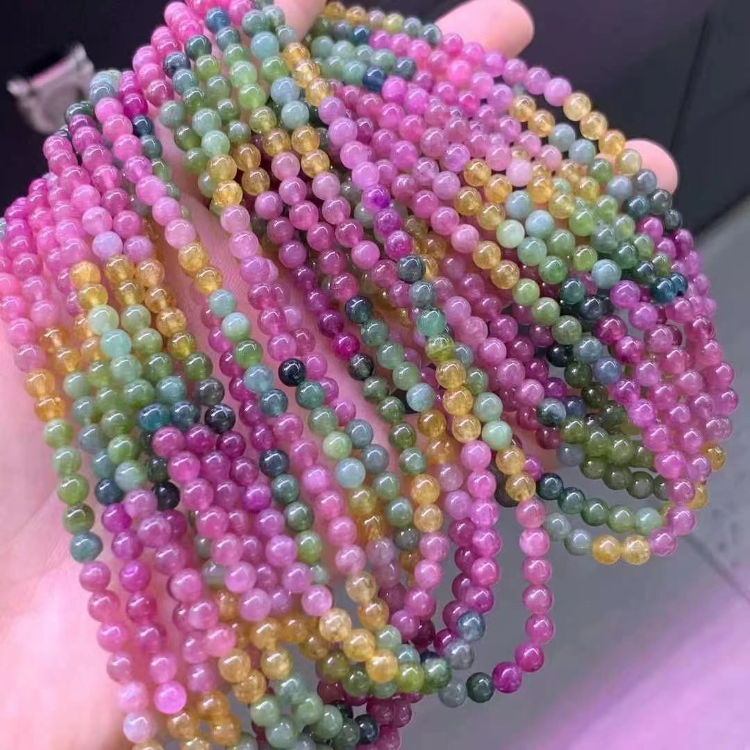 メーカー卸売り天然碧璽三輪ブレスレット仏珠結晶透過DIYアクセサリー散珠直播ソース
