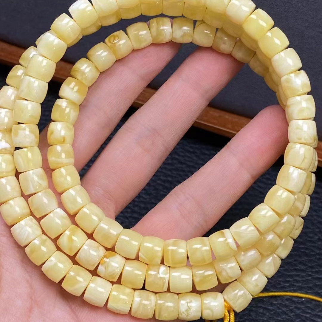 メーカー卸売り天然ロシア材料白花鶏油黄仏珠多輪手串diy手作アクセサリー散珠