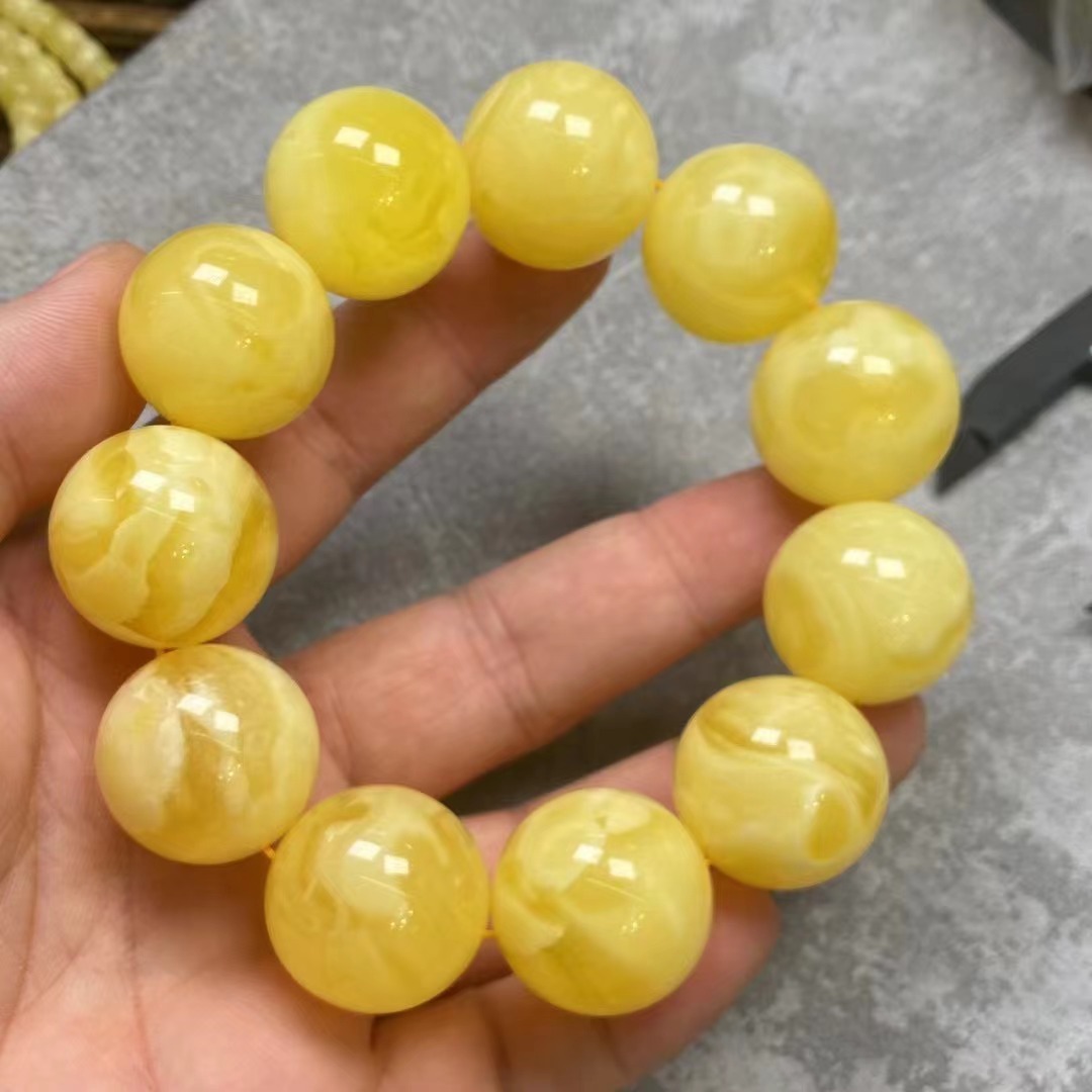 メーカー卸売り天然ロシア材料ミツロウ鶏油黄手串ブレスレットとs 925銀飾り生放送ソース