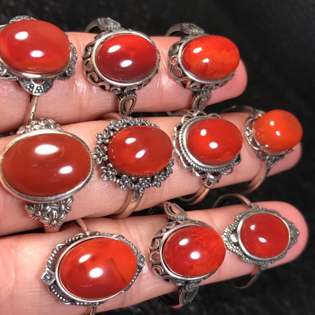 メーカー卸売り天然川料南紅指輪満肉満色s925銀復古風diyアクセサリー