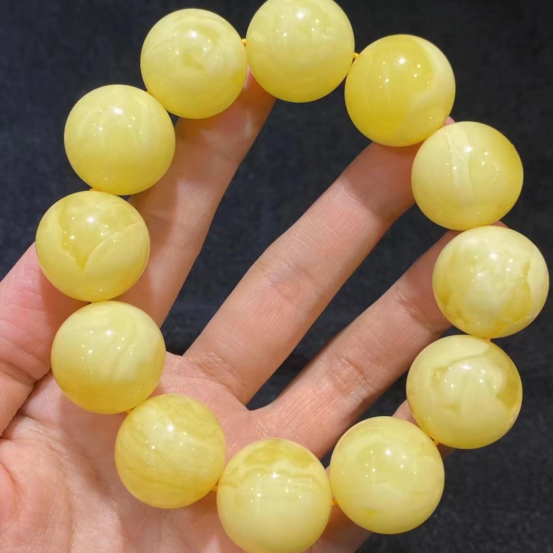 メーカー卸売り天然原鉱ロシア材料蜜ろう白花鶏油黄仏珠多輪手串ブレスレット散珠