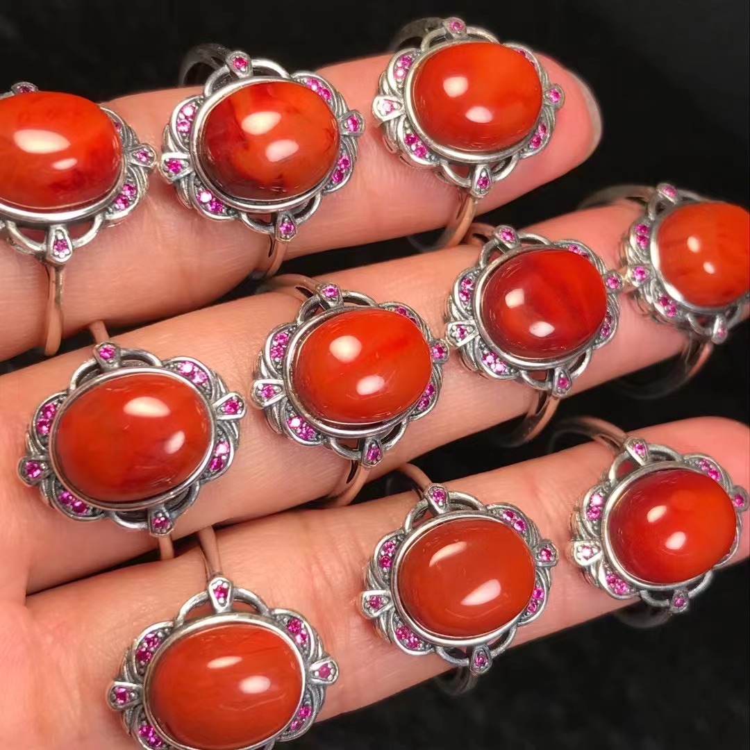 メーカー卸売り天然南紅メノウ指輪s925銀モザイク女性diyアクセサリー新型起爆金