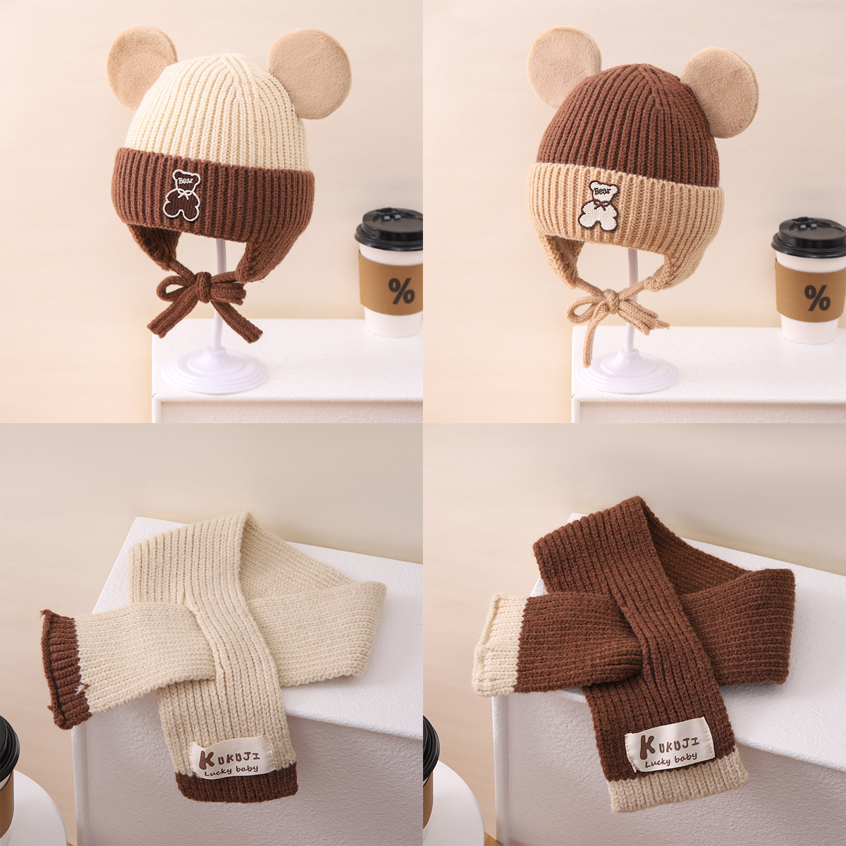 漫画ぬいぐるみ熊秋冬赤ちゃん帽子子供マフラーワンピースベルベット子供帽子毛むくじゃら保温