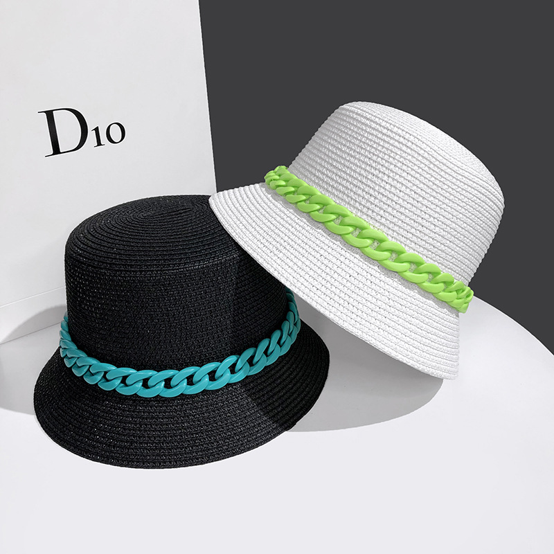 ネット赤カラーチェーン草編みバケツ帽子子供夏日よけ麦わら帽子日焼け止め帽子
