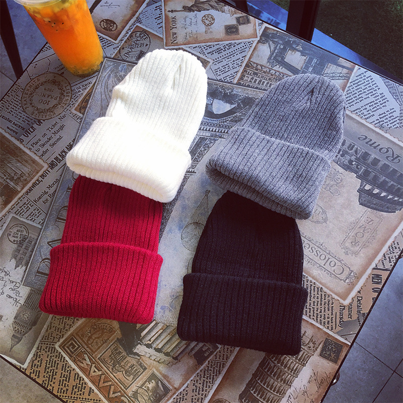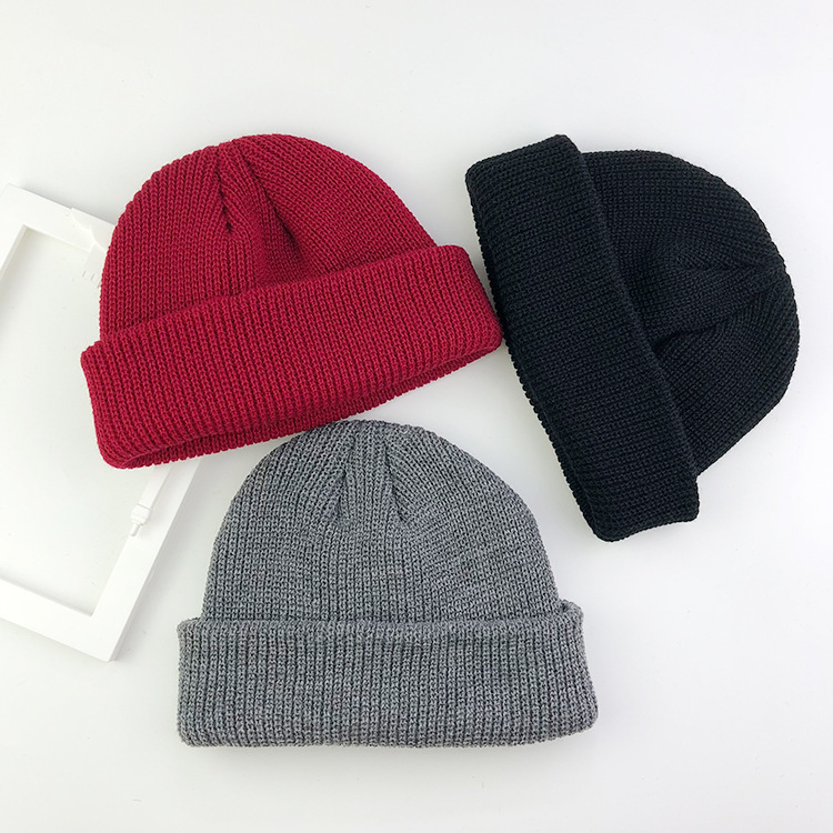 韓国版秋冬瓜皮帽子新型毛糸帽子男性女性地主帽子雅痞包頭冷帽子ショートニット帽子