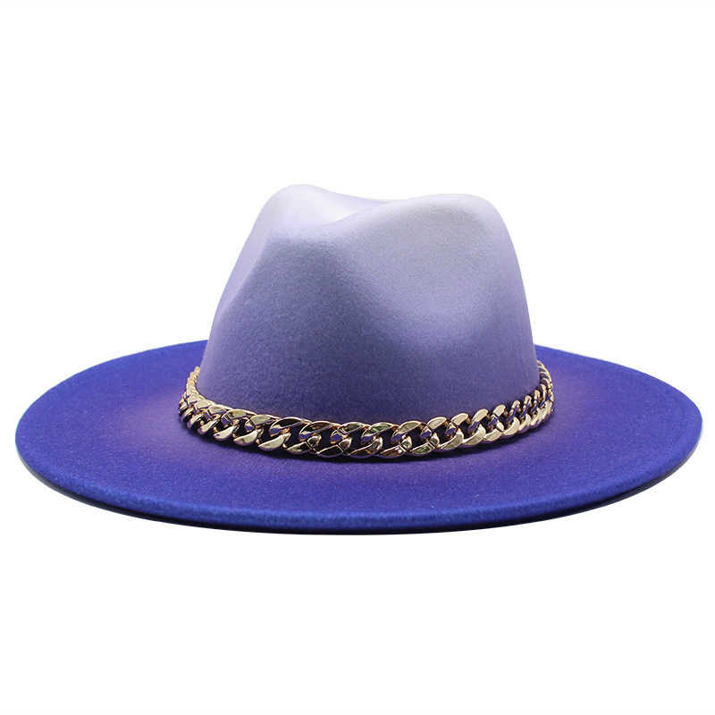新型欧米風の大きな軒の毛です。礼帽のグラデーション色塗装ジャズ帽秋冬男女帽子フェルト帽hat成