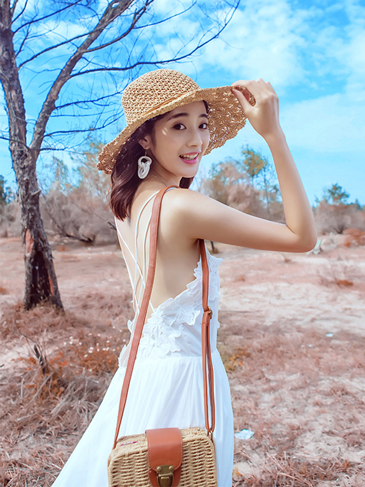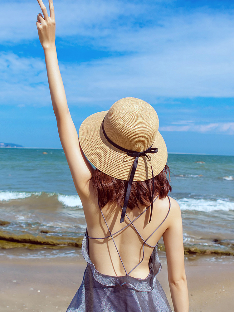 麦わら帽子の女森系夏の小清新な日よけのビーチ帽の大きなつばの日本の日よけの海辺のかわいい日よけの帽子の成
