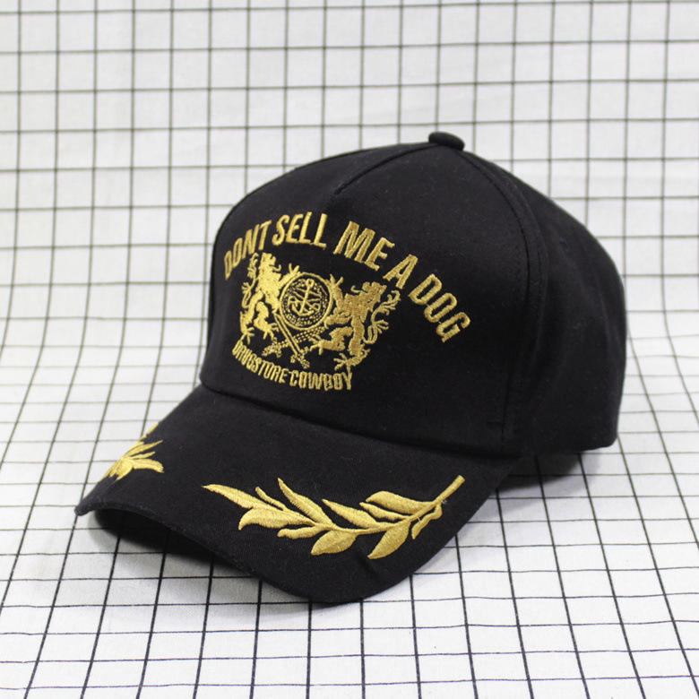 新型百合鴨舌帽双獅子鷲太陽帽帽子男女軍事訓練刺繍麦穂黒野球帽
