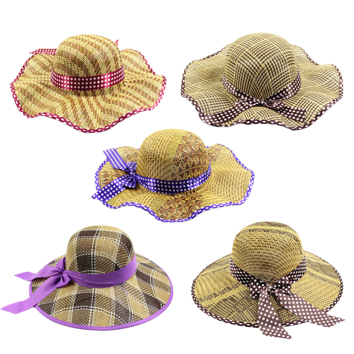 夏の大きなつばの麦わら帽子のお茶の日焼け止め農民旅行の日よけ帽子の蝶結びの点の大きい帽子の女性のビーチ帽に沿って